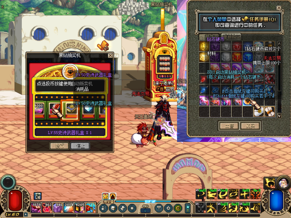 4、到了60搬砖收装备去PK,或者尽情的爆锤机械牛或者虫子吧 顶级60CC套图纸在冰龙,绿都,机械牛,虫子都有出,概率低。套装属性加动了一条。更耐抗了 打深渊爆出史诗碎片能在大婶NPC换取自选50SS和55SS还有灵魂猎者